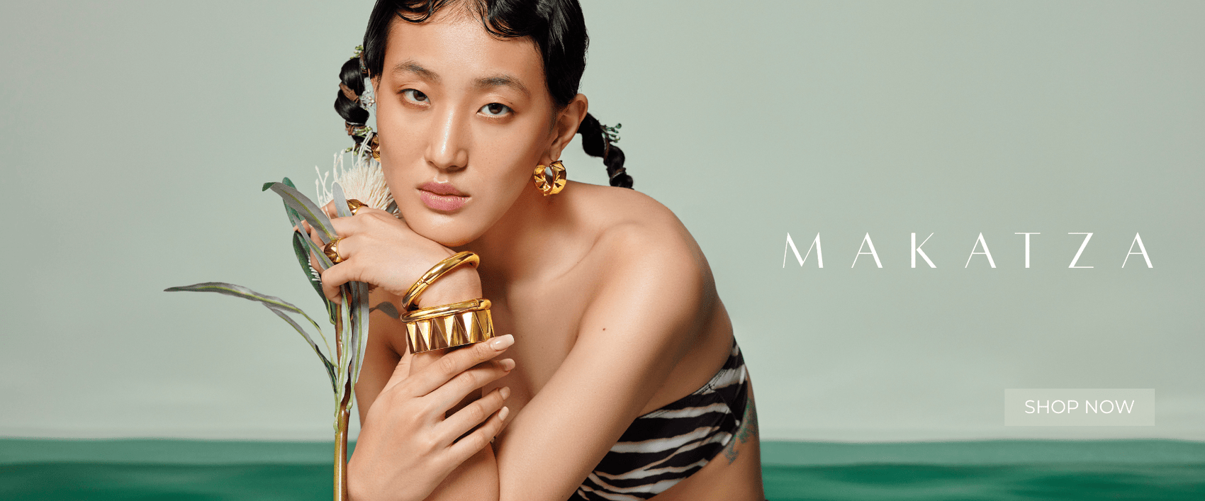 The Makatza collection brings wild beauty and raw nature to life. Featuring glamorously oversized pieces with organic shapes and elements, this collection embodies the untamed power and mystique of the forest.